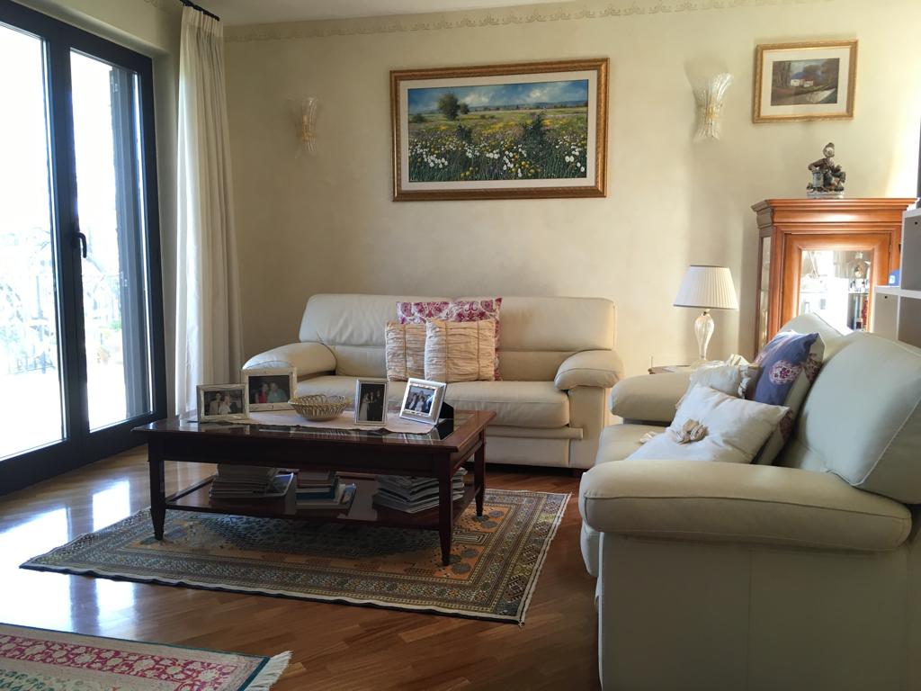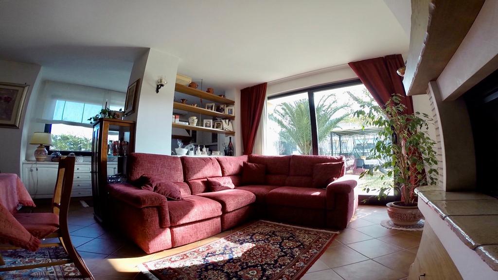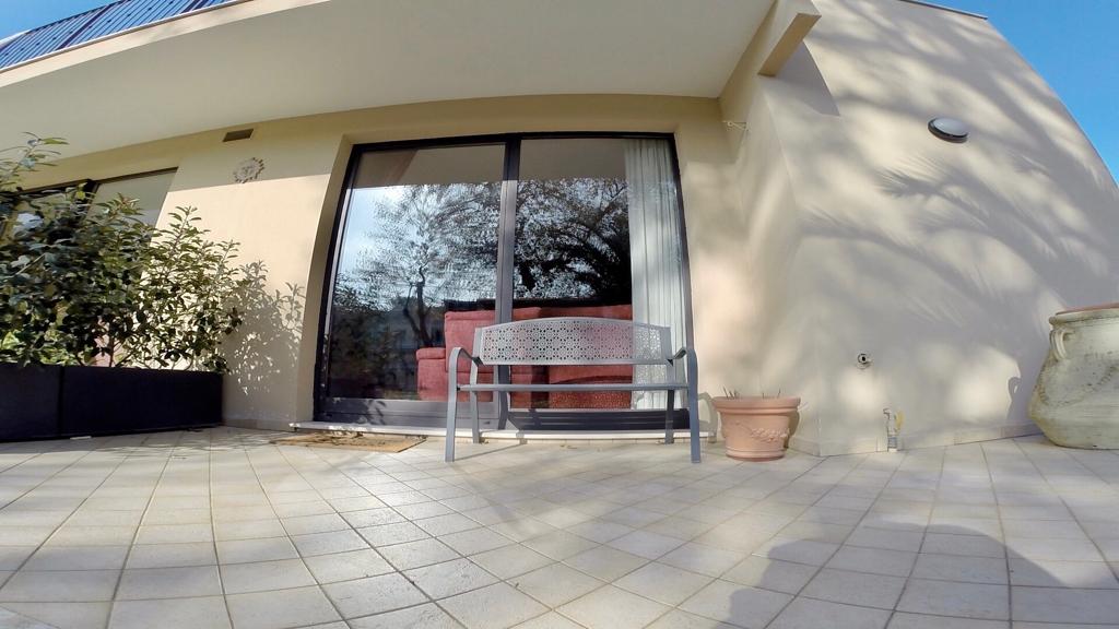 in VENDITA, all' interno di una prestigiosa e signorile VILLA BIFAMILIARE di recente costruzione, un panoramico appartamento su tre livelli situato nel comune di Montesilvano, a 10 minuti dal mare. Soluzione ideale per chi vorrebbe acquistare una bellissima casa già pronta per trasferirsi, senza dover fare lavori di ristrutturazione, per vivere nella tranquillità e fuori dal centro abitato, senza rinunciare alla comodità dei servizi. Al piano terra troviamo una taverna con camino, cucina in una zona giorno open space, bagno e uscita direttamente sul giardino di 200 mq Al piano primo troviamo un ingresso, una cucina anch'essa con camino, bagno, lavanderia, sala con uscita sul terrazzo perimetrale con zona relax e tettoia in legno. Una scala ed un ascensore interno ad uso esclusivo portano al secondo piano che è composto da: camera da letto padronale con bagno in camera, cabina armadio e terrazzino vista mare, 2 camerette, bagno e ripostiglio. Completa la proprietà un garage con annessa palestra attrezzata e un viale carrabile con posti auto coperti e scoperti.